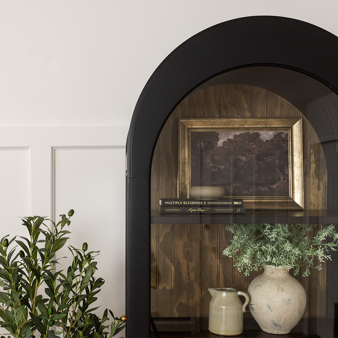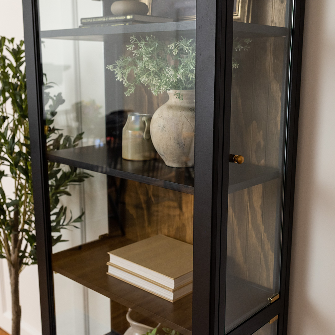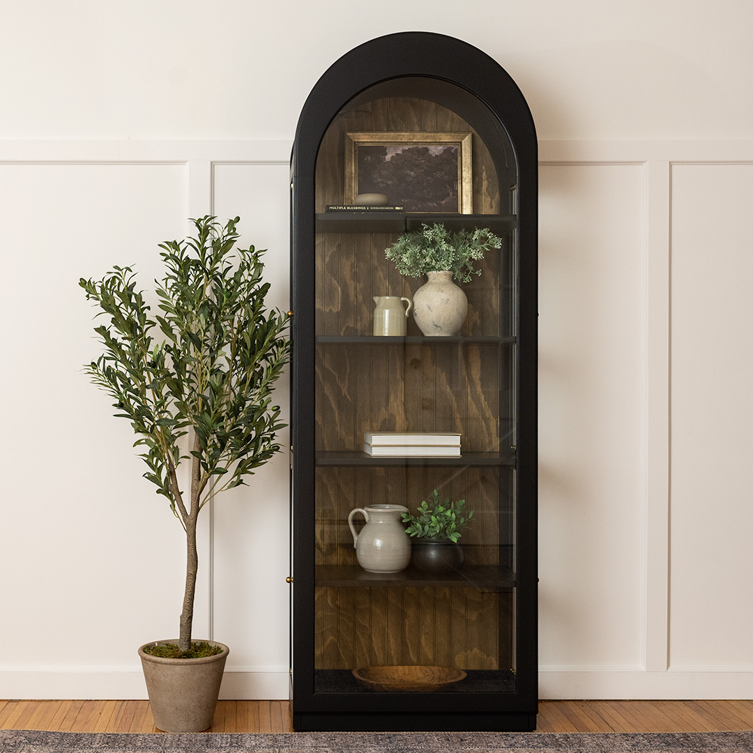 With its beautiful arched design, this curio cabinet is a statement piece. It features five spacious areas and a clear glass front, turning simple storage into a curated display.